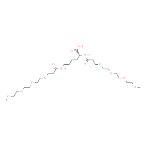 - Bis-(m-PEG4)-amidohexanoic acid;DA-61703;(R)-14-Oxo-20-(2,5,8,11-tetraoxatetradecan-14-amido)-2,5,8,11-tetraoxa-15-azahenicosan-21-oic acid;(2R)-2,6-bis(2,5,8,11-tetraoxatetradecan-14-amido)hexanoic acid;(2R)-2,6-bis[3-[2-[2-(2-methoxyethoxy)ethoxy]ethoxy]propanoylamino]hexanoic acid;CS-0115560;HY-140016;2353409-74-0;AKOS040743057